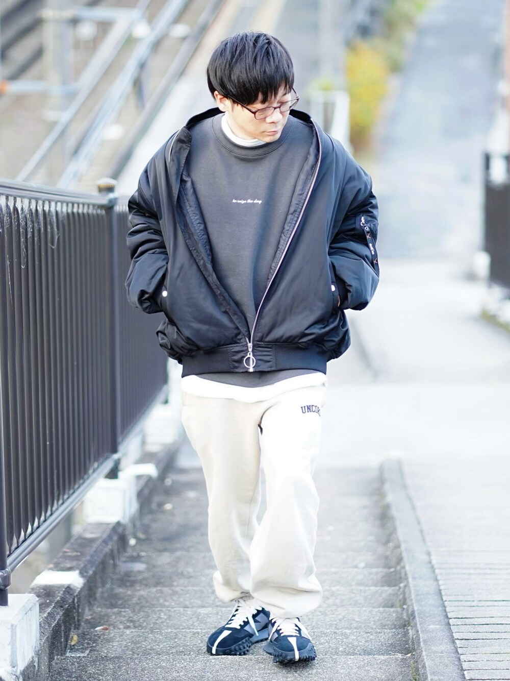 いつも見て頂きありがとうございます😊 オーバーサイズなMA-1使ったストリートコーデです。 チャコールグレーのスウェットにベージュに近いスウェットパンツ合わせて、あとは、黒のゆるいMA-1と黒のスニーカーでね…締めました。 *tops: JOHN’S CLOSETさんのRed Cap Girl /レッドキャップガールの『裏起毛SITTING GIRLバックプリントCNスウェット』。前回は、エモいバックプリントをお見せしましたが、今回はフロントのさりげないロゴをどうぞ💁♂️ ✅ZOZOにてタイムセール中で10%offで購入できますよ🙋🏻♂️ はい… ではでは、 もし、こんなので良ければ、いいね、+、フォロ〜よろしくお願い致します🙇🏻♂️ いつもフォルダインして下さる方々、ありがとうございます😊
