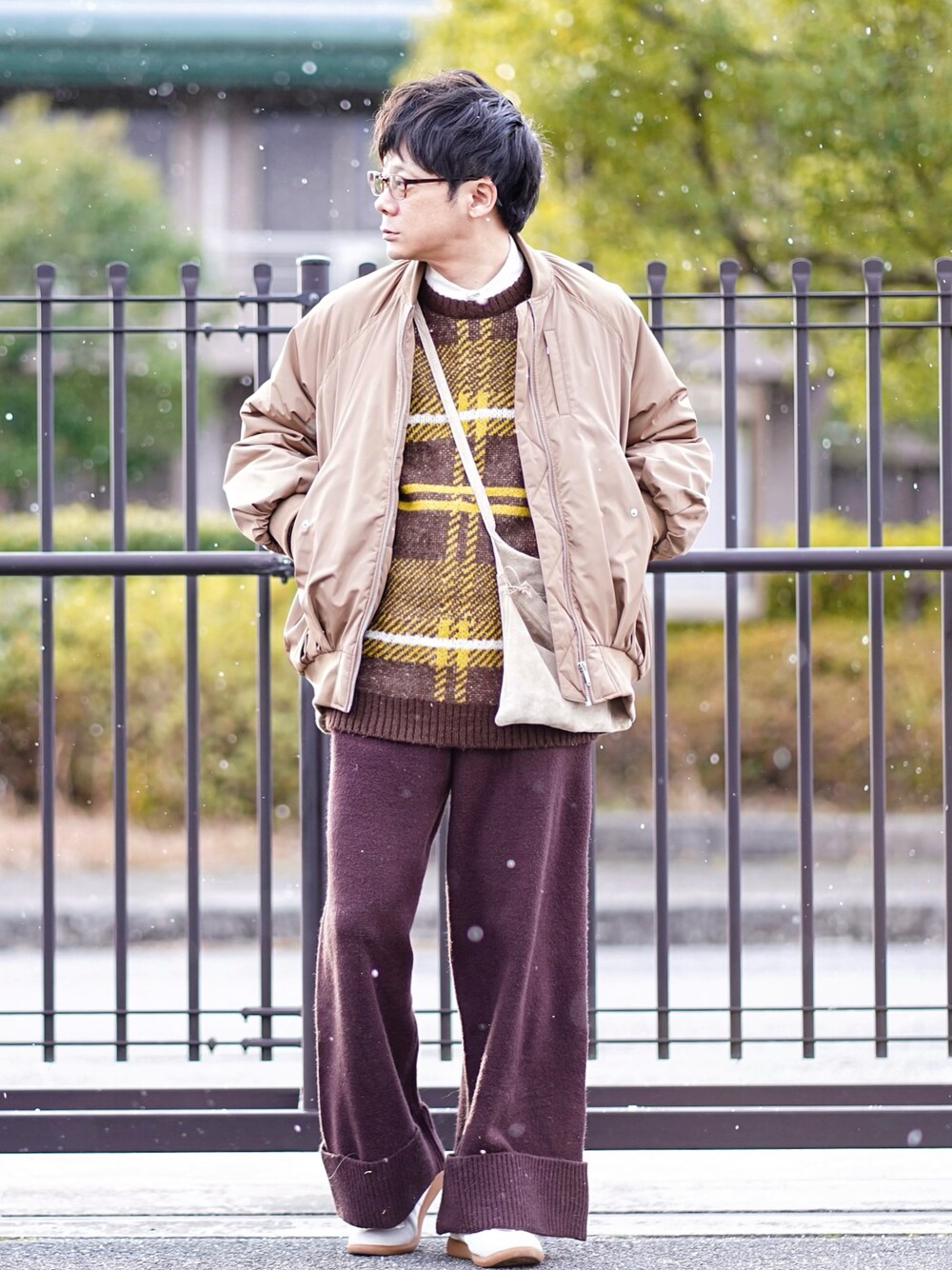 いつも見て頂きありがとうございます😊 雪降る中…撮った…ブラウンで統一したオトナカジュアルコーデです。 はい、 ブラウンも着ると落ち着いて好きですね…このニットパンツ、めっちゃ暖かくて、ゆるダボ好きにはもってこいですよね… ブラウン系で全体的によせてよせて、ニットチェックと色味をポイントに…ね… 着用アイテム *tops:URBAN RESEARCH Sonny Labelの『チェックジャガードニットプルオーバー』。色味と大柄のチェックがインパクトになって良きです。 ではでは、 今日もこんなので良ければ、いいね、+、フォロ〜よろしくお願い致します🙇🏻♂️ いつもフォルダインして下さる方々、ありがとうございます😊
