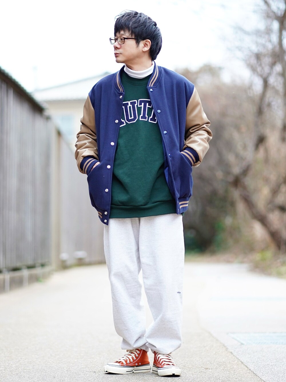 ヒデのスタジャン「『別注』EBBETS FIELDS×SonnyLabel スタジャン」を使ったコーディネート