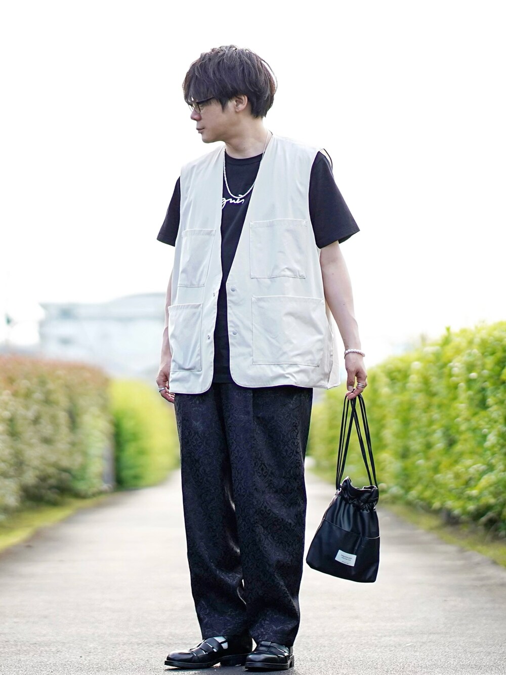 いつも見て頂きありがとうございます😊 オールブラックなコーデに白ベスト入れて、キレイめモノトーンコーデです。 Tシャツのロゴがポイントにね…お気に入りの柄入りジャガードなスラックスと合わせて、オーバーサイズなベストで… *agnes b.の『S137 TS ロゴTシャツ』、シンプルなロゴTシャツ、着回しができるできるアイテムです👍 はい… ではでは、 今日もこんなので良ければ、いいね、+、フォロ〜よろしくお願い致します🙇🏻♂️ いつもフォルダインして下さる方々、ありがとうございます😊