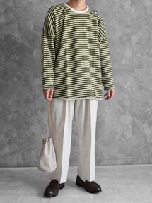ヒデのTシャツ/カットソー「【ビッグシルエット】ワンポイントロゴ刺繍 長袖カラーTシャツ」を使ったコーディネート