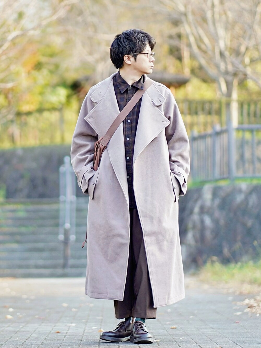 ヒデのチェスターコート「【2WAY】オーバーサイズ メルトン スタンダーカラー ルーズチェスターコート」を使ったコーディネート
