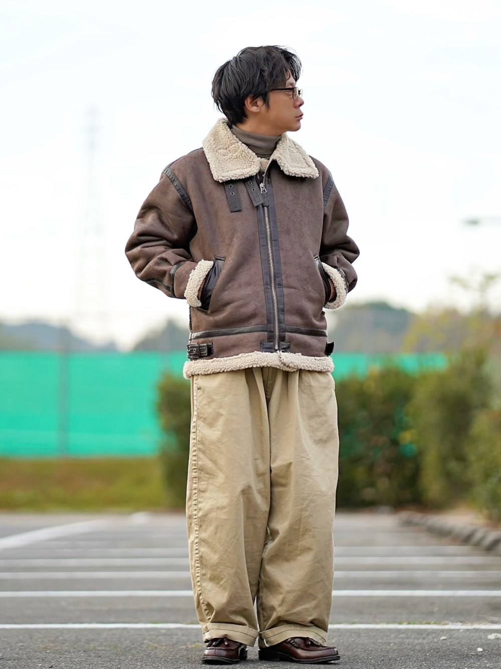 ヒデのムートンコート「B-3ブルゾン/ボアブルゾン/フェイクムートン/フライトジャケット【直営店限定カラーあり】」を使ったコーディネート