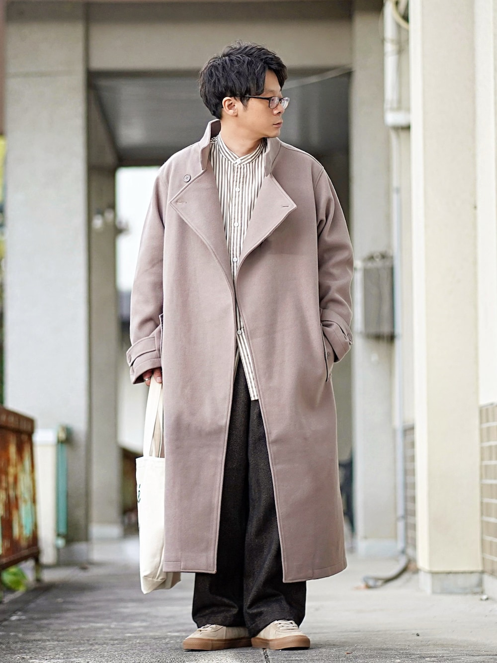 ヒデのチェスターコート「【2WAY】オーバーサイズ メルトン スタンダーカラー ルーズチェスターコート」を使ったコーディネート