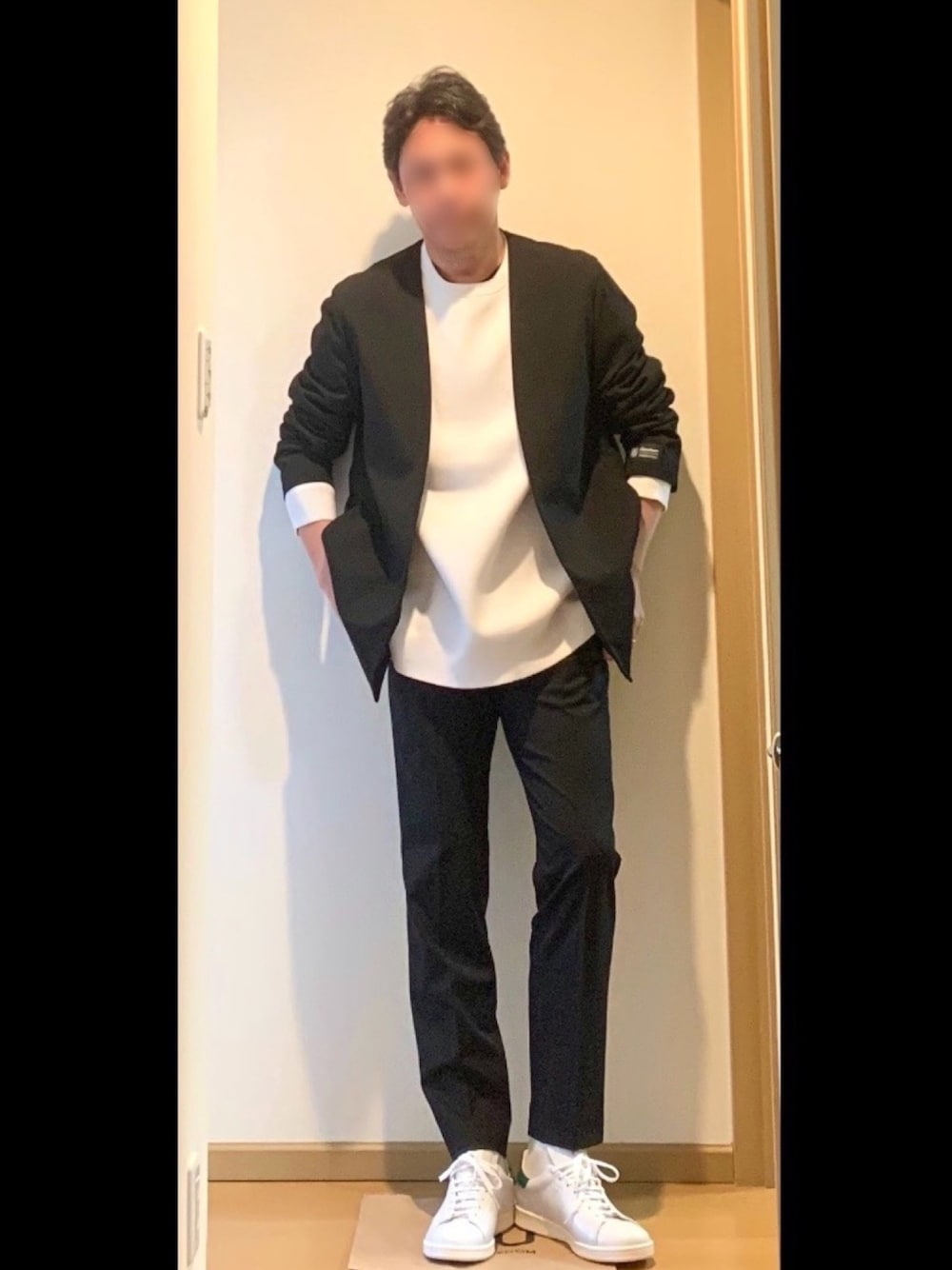 無性にノーカラージャケットが欲しくなって、色々物色してたどり着いたセットアップ🤗 通販でのお買い物やったけど、サイズはむちゃくちゃピッタリでビックリ💦 袖のタグはまだ外してないだけですので、ご安心くだされ😎 ちなみにインナーはUNIQLOのミラノリブニットをXXLで👍