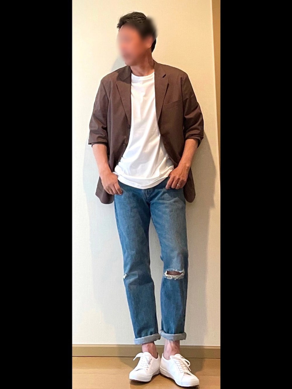 UNIQLO uのリラックスフィットテーラードジャケットが激安になってたので、衝動買い(笑) 栄作コーデに羽織ってみました👍