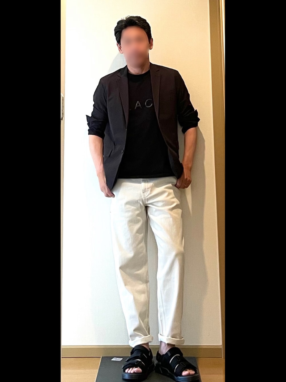 UNIQLOのデニムワークパンツに、ストラップサンダル トップスにジャケットを取り入れてバランス取ってみた😎