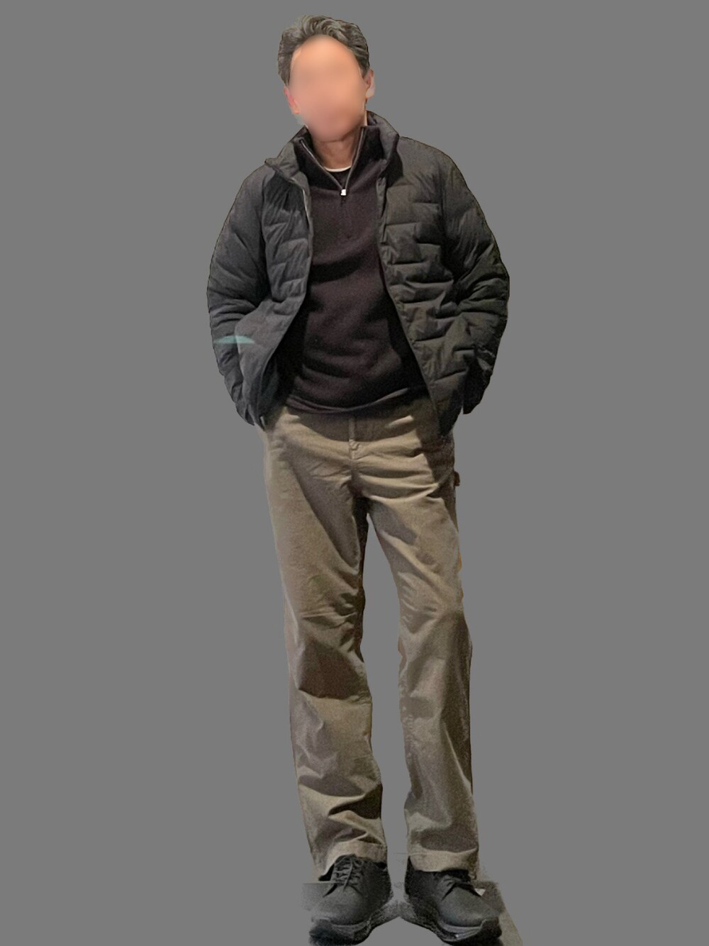UNIQLOのワイドフィットワークパンツで少し男臭い雰囲気…かな? でも、そこまでワイドではないんよね〜