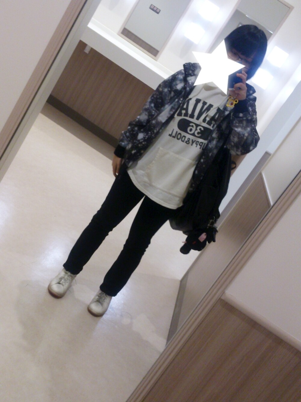 適当にあるものを羽織って外に飛び出しました。 白いスニーカーが薄汚れているので買い直したいです…白ハイカットって汚れるよね? スタイルが悪いせいでお洋服が死んでしまうのを実感したので痩せたいです。以上。