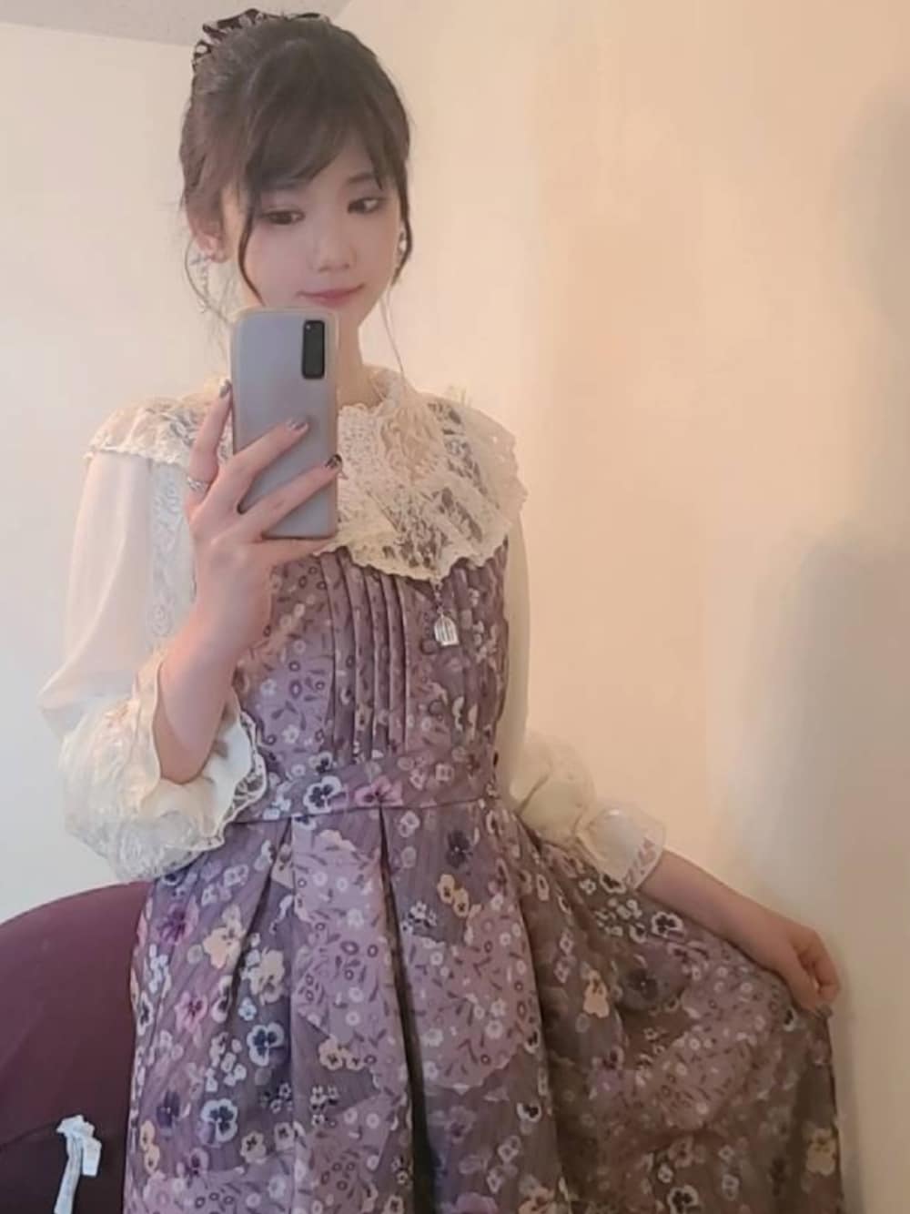 🦄ひづめのジャンパースカート「パッチワークパンジー柄JSK」を使ったコーディネート