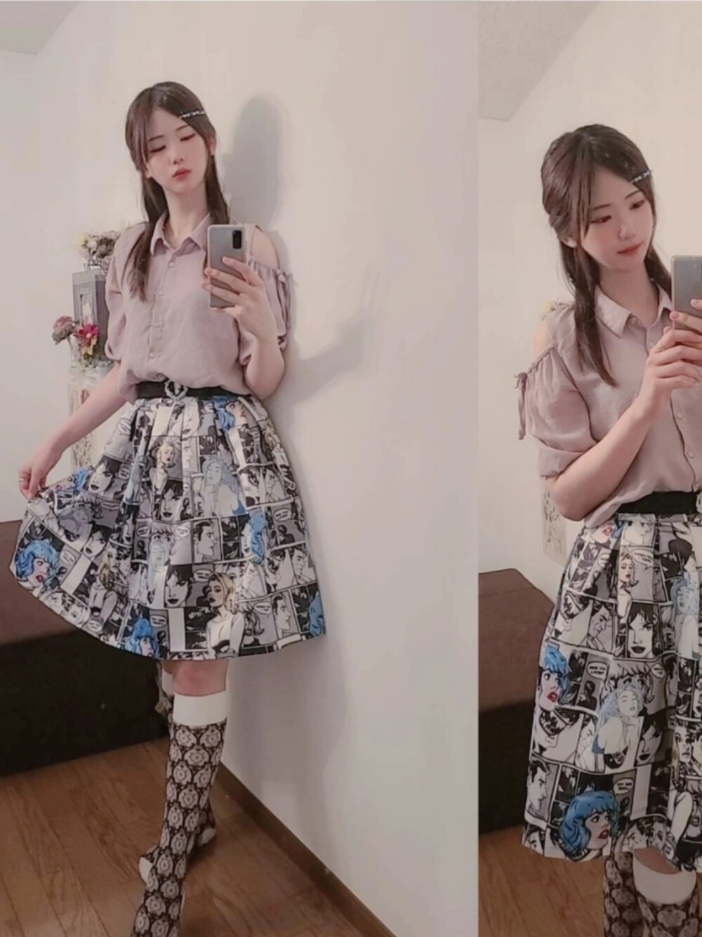 👱♀️🪞💎 柄柄の下半分🧜♀️ シンプル肩あきの上半分🍀 ピンクとブルーの 対象です🎀🗽