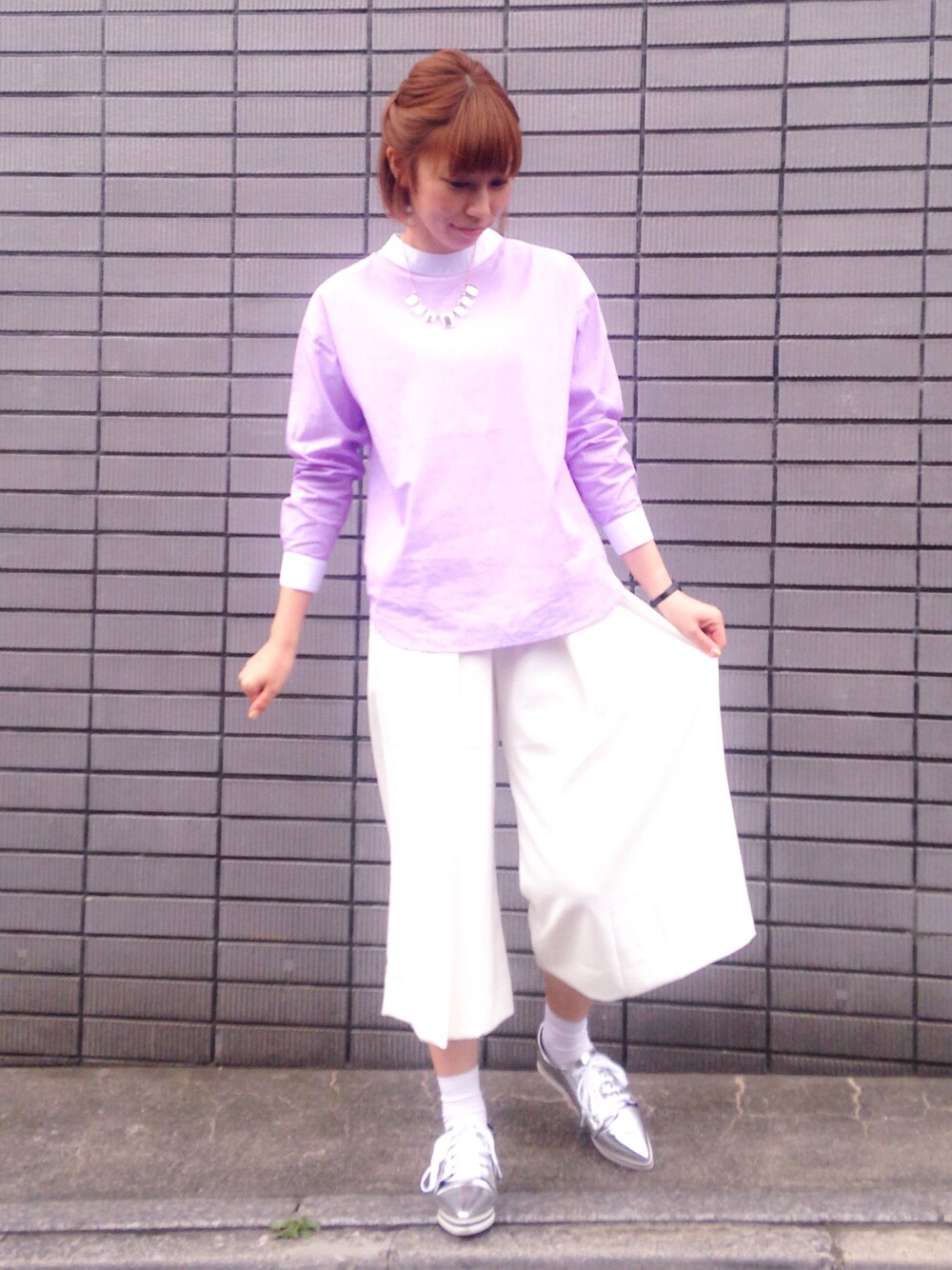何にでも合わせやすい白のガウチョパンツとシルバーシューズは今季大活躍の予感◎ 今日はピンクのシャツと合わせて、ちょっと可愛いカラーの組み合わせにしてみました(*^^*)💕 久しぶりにヘアアレンジしてみたよ〜🎀