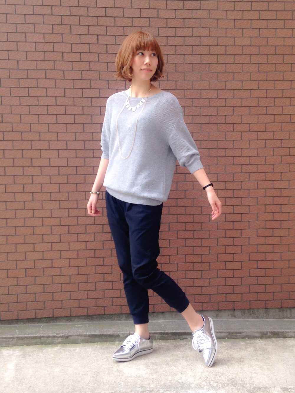 今日のテーマは『スポーツミックス』 ちょっとメンズチックなラフコーデにも、やはりシルバーシューズが大活躍!!