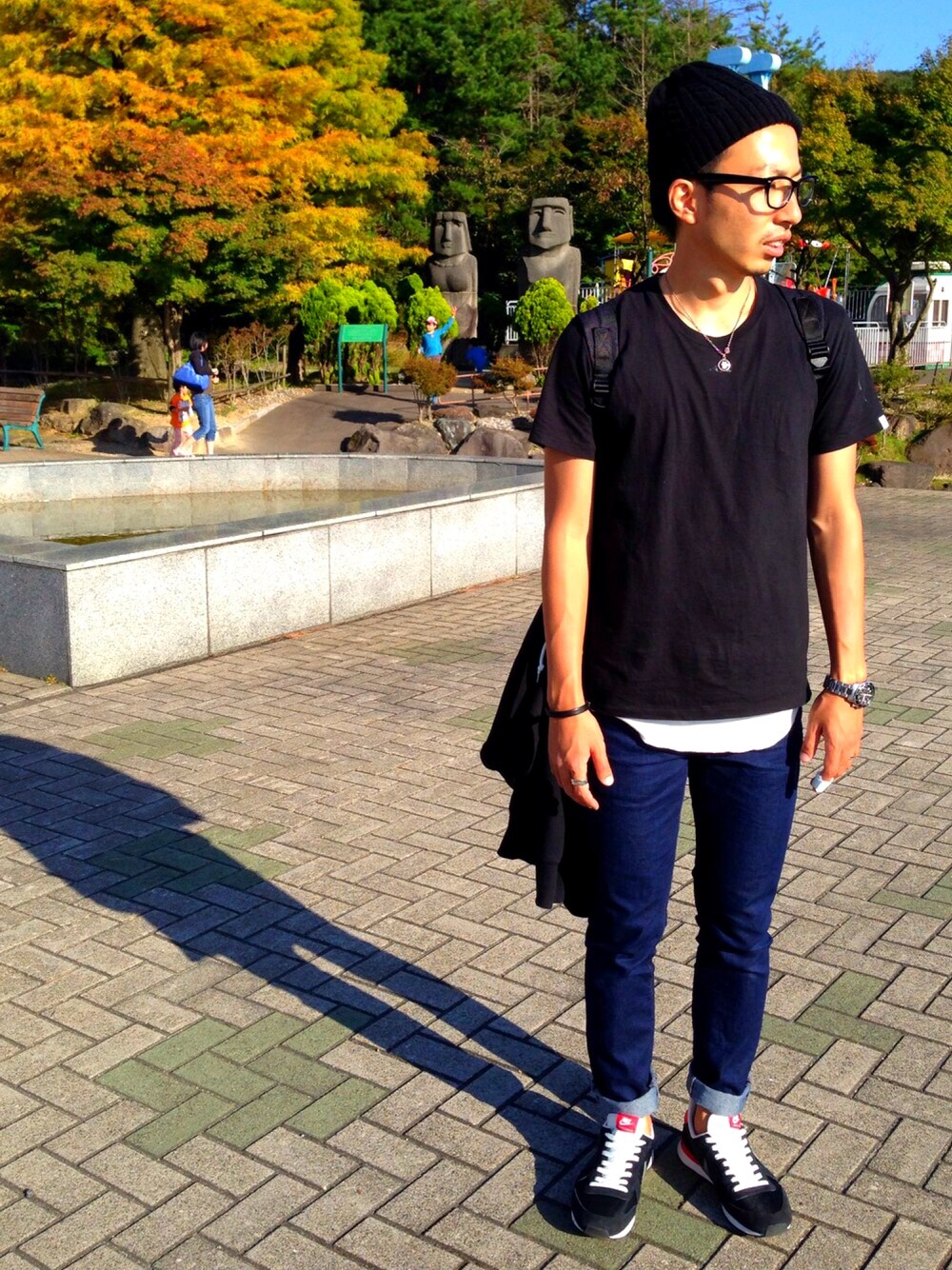 秋だけど半袖 子供たちと遊園地だったので 動きやすいスタイルで トップス VICTIM インナー VICTIM アウター VICTIM パンツ GU 靴 NIKE 小物 GW GARNI sinn 無印