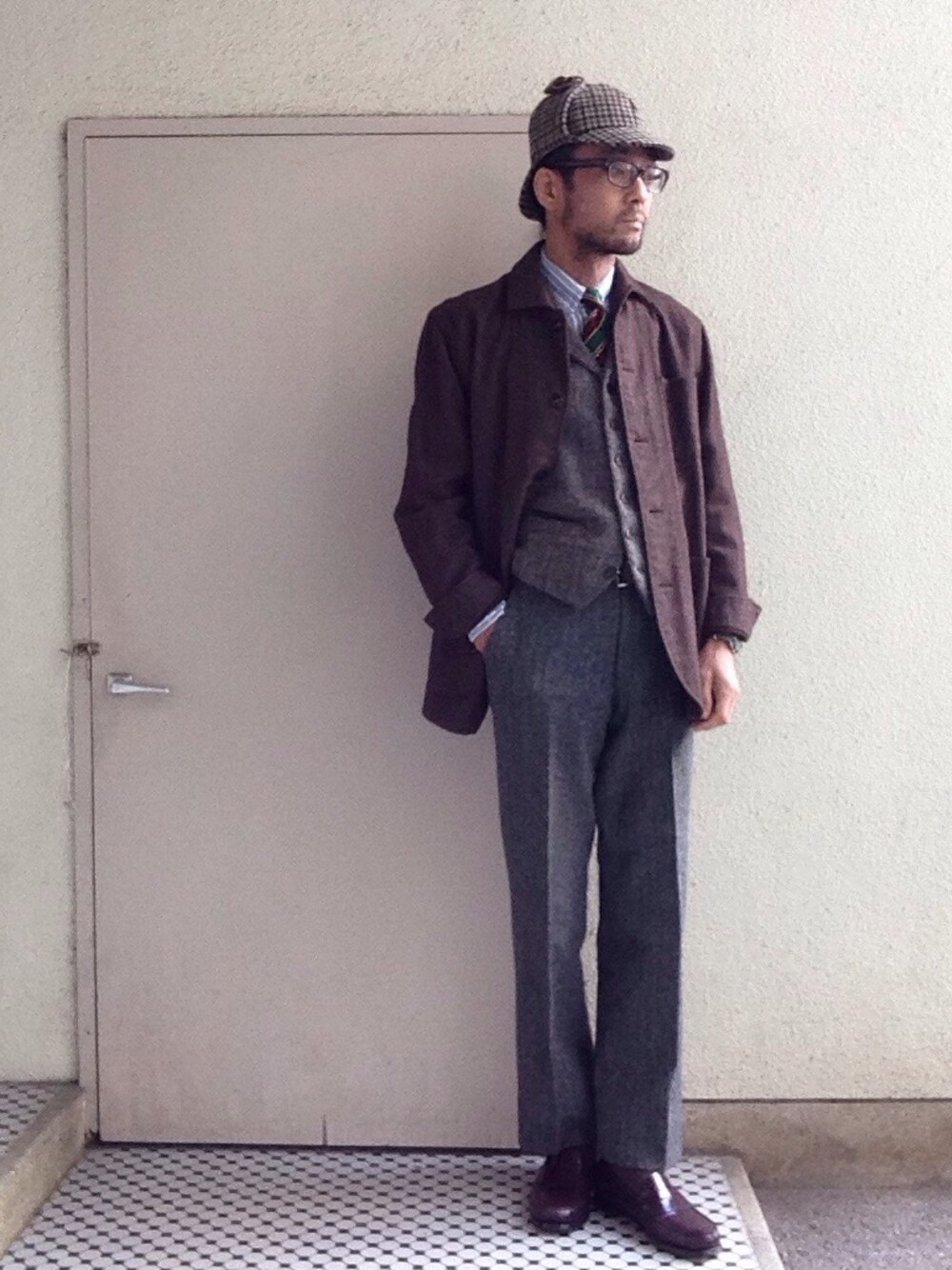見ての通り、 英国の某有名探偵の コスプレに近いコーデ。 ハロウィンも過ぎたのに、 チョット恥ずかしいけど、 鹿撃ち帽が被りたかったので やってみました(^^;; 足下がちょい手抜きでしたね〜