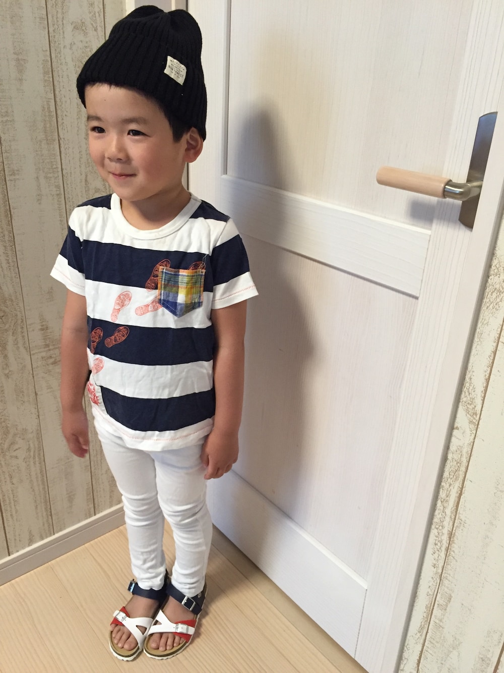 この色の組み合わせ好き(^^) 長男もプティマインの白パンツで♪ 膝とお尻すぐ汚す〜笑