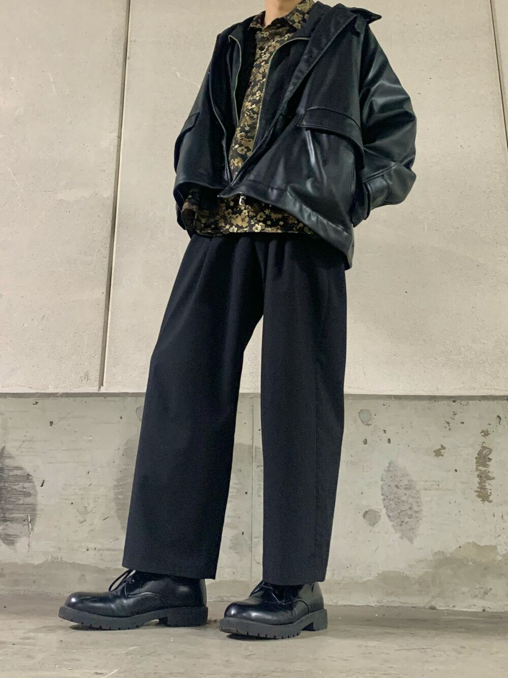ひろのステンカラーコート「2WAYシンセティックレザーコート(HARE)」を使ったコーディネート