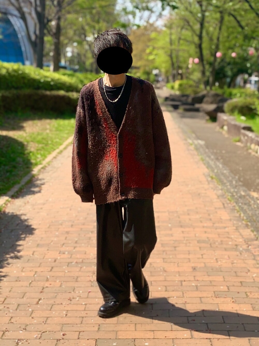 流行りのカーディガン HAREの一目惚れして買ったアブストラクト柄のカーディガンめっちゃいい!! カーディガンとレザーパンツの組み合わせが好きです でももうカーディガン暑すぎて着れなくなってきそう 春無いじゃん今年…