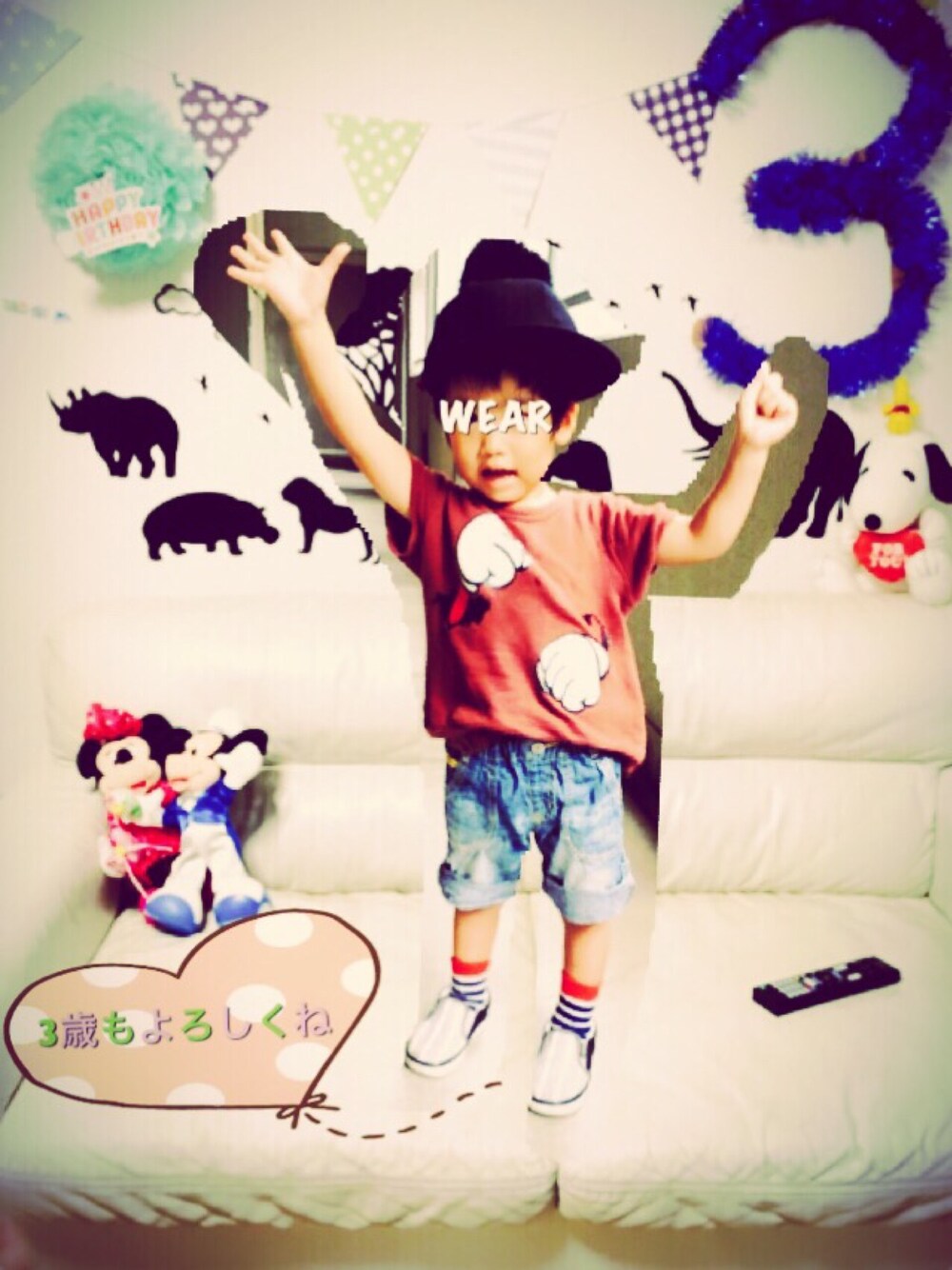 こんばんは☺︎ 前回ものすごく長い文にあたたかいお言葉をたくさんありがとうございました😭🙏 こんなにたくさんの人にお気遣いいただき申し訳ないとともに感謝の気持ちでいっぱいです💖 改めましてありがとうございます😉🙏✨ さてさてバッチさん今日で3歳になりました💙 なんとトイトレ3日連続成功中です✨✨👍 また後戻りもあるかもですが焦らずいきたいです🙌 バッチさんのお誕生会は親戚集まって土曜日にするので 今日は好きな食べ物だけでもと思い朝一聞いてみました🙋🏼 今日何たべたい? えー。納豆とごはん。 あ。バッチさんの好きな料理ワンツーフィニッシュや。 お昼は納豆とごはんに昨日の残りものさんまをたいらげました。 夜何たべたい? えー。納豆とごはん。 それお昼食べたやん。 お肉とーお魚とー焼き鳥ーハンバーグー? コロッケーシュウマイーカレー? 唐揚げ?何がいいかなー? コロッケとシュウマイ😑 結果 夜ごはんは お総菜コロッケと赤箱シュウマイ😂 どんな誕生日やねん。 土曜日頑張ろ😜🍲🍝🍕🍛🍖🍳 小窓はありがたいことにケンママとふーみんがお祝いしてくれた写真を(笑) 2人のセンスと加工技術(笑) ありがたや😋❤️ 昨日から感謝しっぱなし親子。 明日からもどーぞよろしく🙌 見てくださりありがとうございます♡ あ。私の加工技術のクオリティ低すぎますがゆるしてね😂🙏