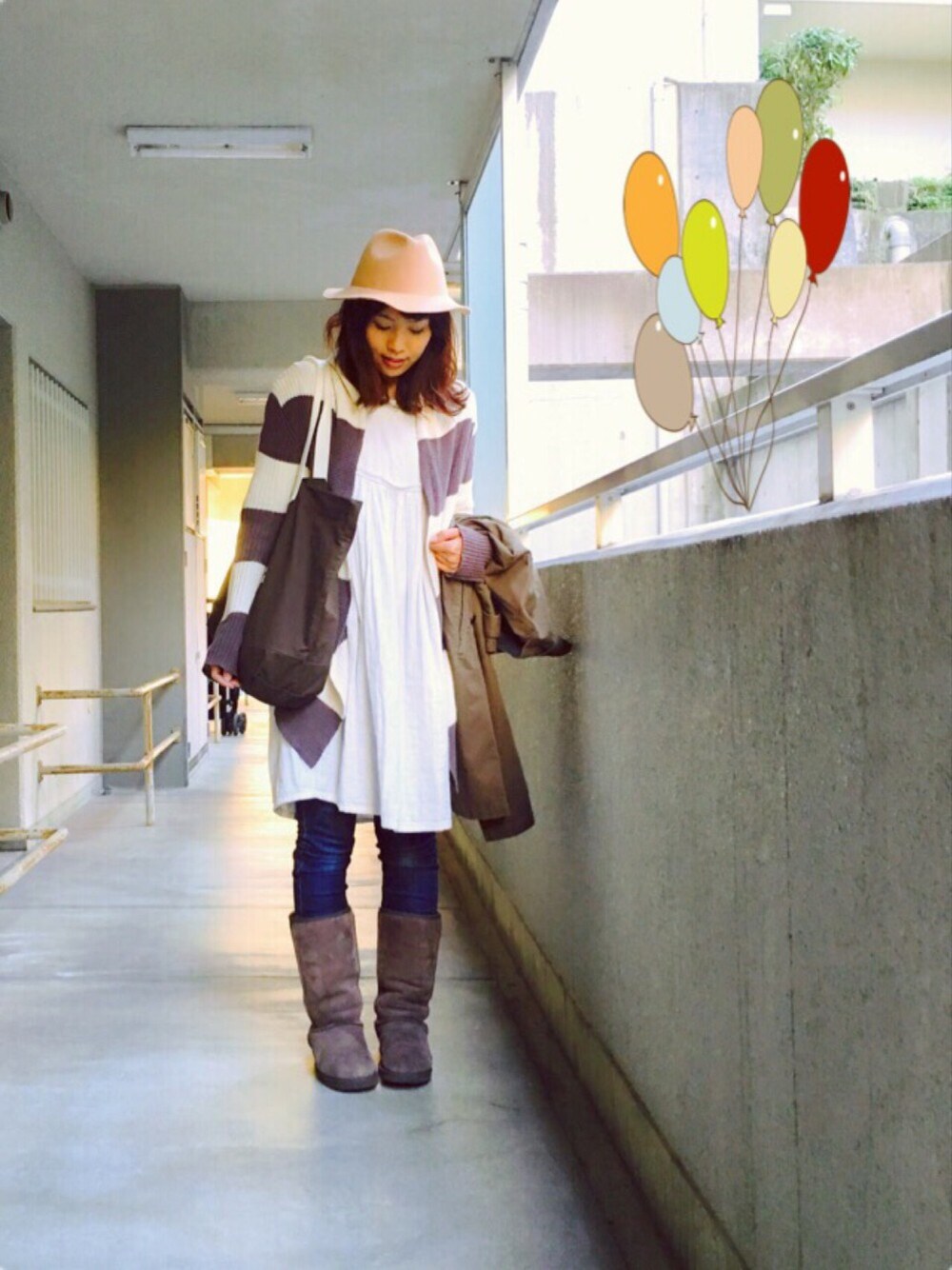 naooon☆のハット「F/PEウールショートブリムハット」を使ったコーディネート