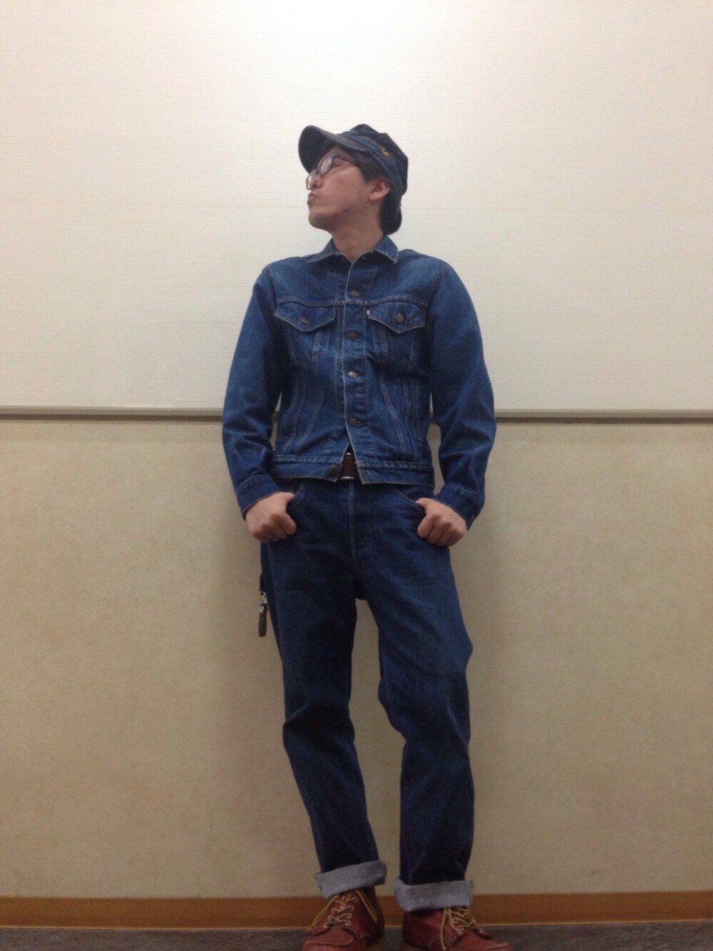 デニムです! 全部です!← 全部Levi'sって言いたいけどワークキャップだけLeeです!笑← ゲーセンで音ゲーしてる先輩をトイレの近くで待っている人の図です!笑← 70506は古着屋さんで買ったんですが、ポケットに手を入れたら1セント硬貨が入ってました!笑 前の持ち主が入れたまんまにしてたんですかね、ロマンありますね〜(*´∀`)✨ 古着屋さんあるあるでした!笑