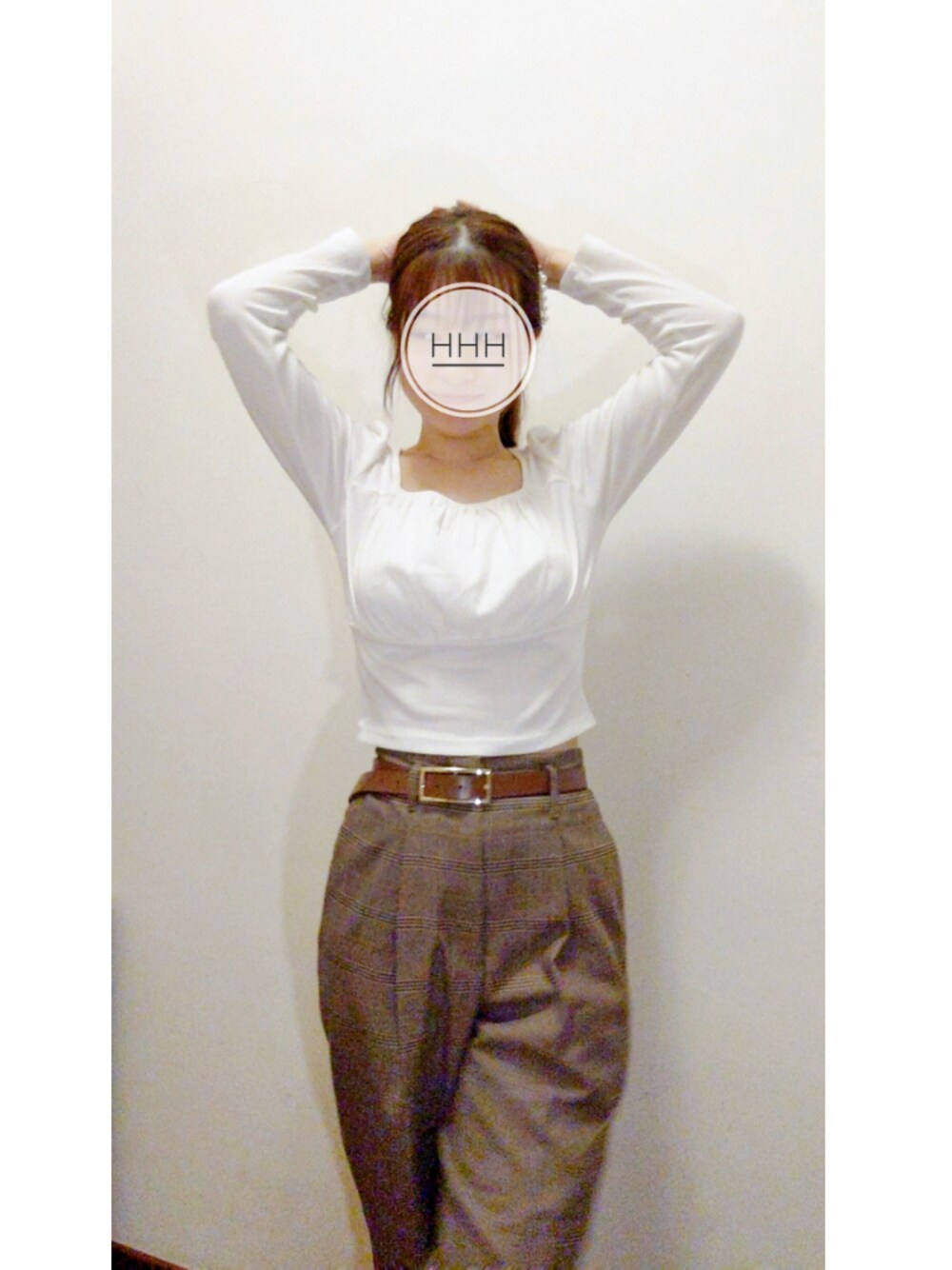 ホワイト系のトップス、ブラウン系のパンツ、ブラウン系のその他を着用したレディースの秋コーディネートの1枚目の写真