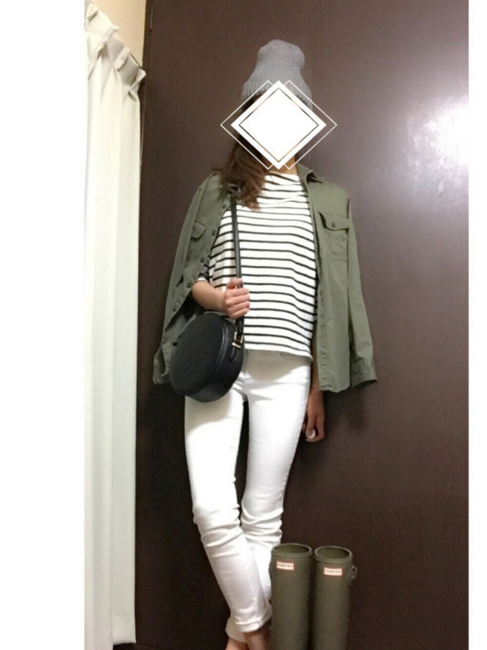 雨の日春コーデです♬ オリーブのレインブーツとカーキのシャツを 合わせてみました(๑•̀ㅂ•́)و✧ 見に来てくれてありがとうございます♡