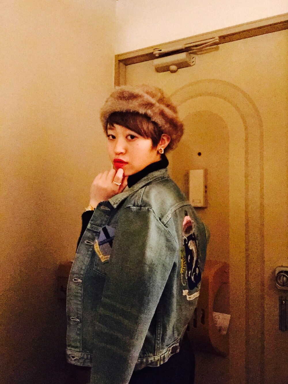 古着のもこもこ帽子、今年も大活躍しそう。 タートルにgジャン、最高だね