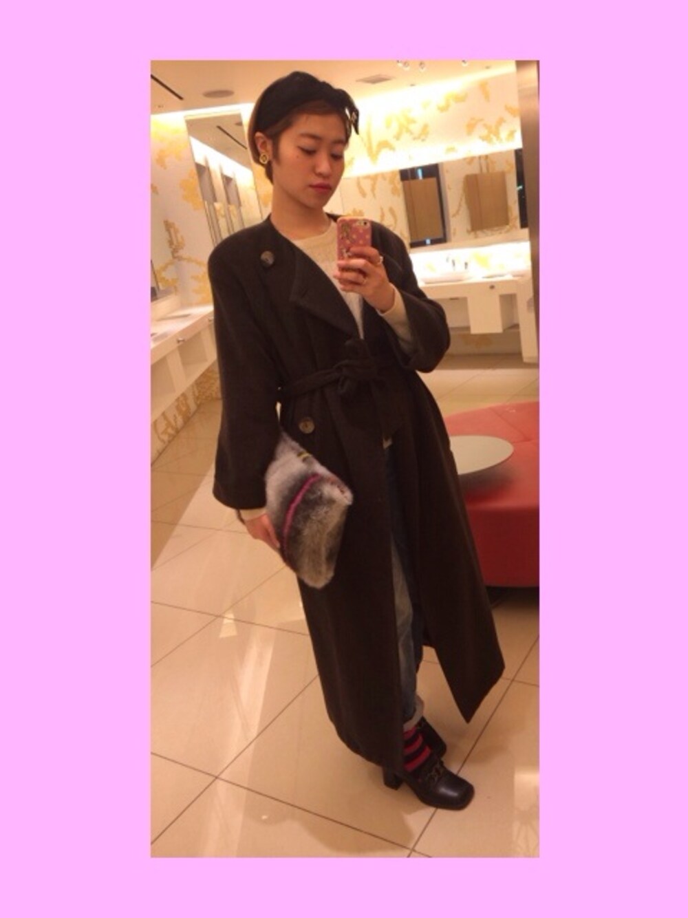 最近の古着ブームは留まることを知らず。 ほとんどusedだよー! ずるずるコートお気に入り♥︎ ▼.コート…used ▽.ニット…used ▼.デニム…おさがり ▽.靴…used ▼.靴下…happy socks ▽.カバン…バブルス ▼.ヘアバンド…TOGA