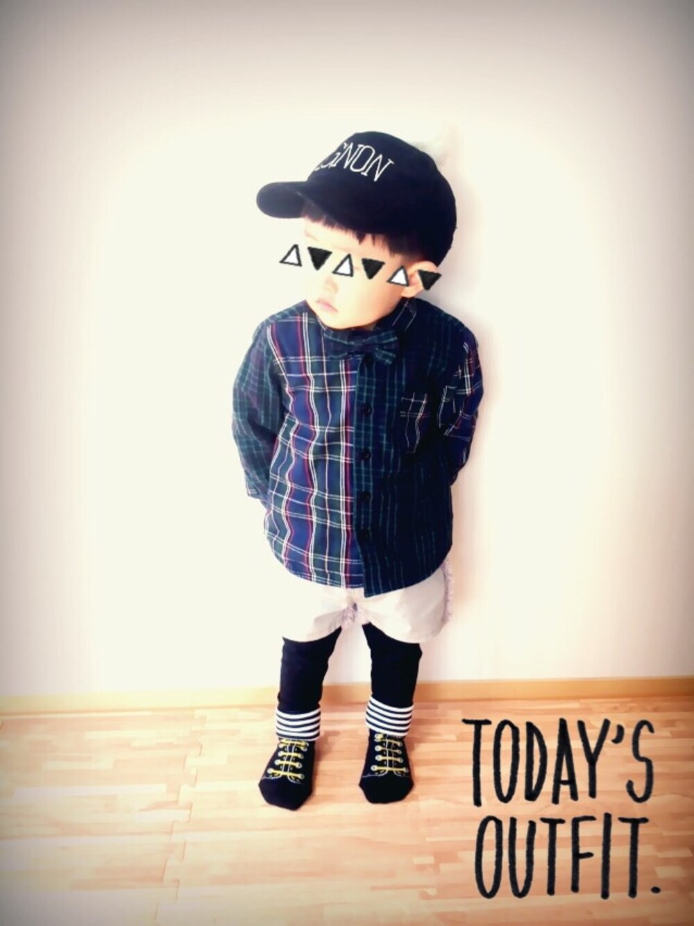 今日は蝶ネクタイ付きのシャツです(°v°) ボトムスはuuの女の子用ショートパンツだけど、オーバーサイズだから腰履きで♡ 今日はなかなか良い子で写真撮らせてくれました☻