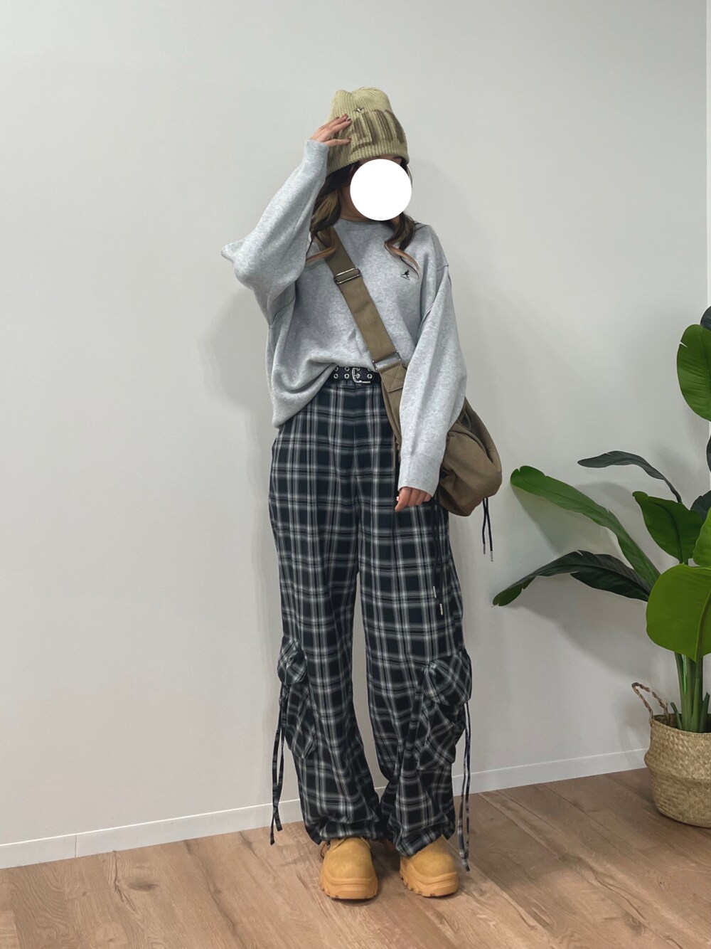 スウェット?いいえ、ニットです! ちょっとだけインしてパジャマ見え回避💨 🩶×🖤×🤎で合わせてみた💫💫