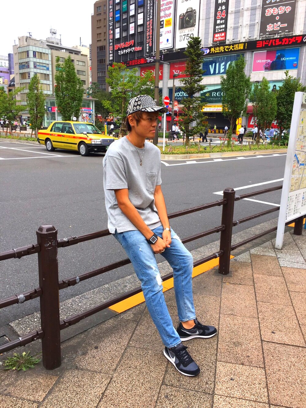 久々の投稿です。 写真のコーデは木曜日に撮ったものです。 買い物に行って来た時のコーデで、Vラインを意識して上はビックTをきてパンツは細身のダメージジーンズ履いてみてVラインを作ってみました。