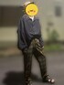 夜半袖はまだ寒いですね😵 トップスのボタンのブラウンとボトムスの色の合わせが好きです😊 2枚目がボタンを外したスタイルです🦖 このオーバーにしたサイズ感が…たまらないです🙈