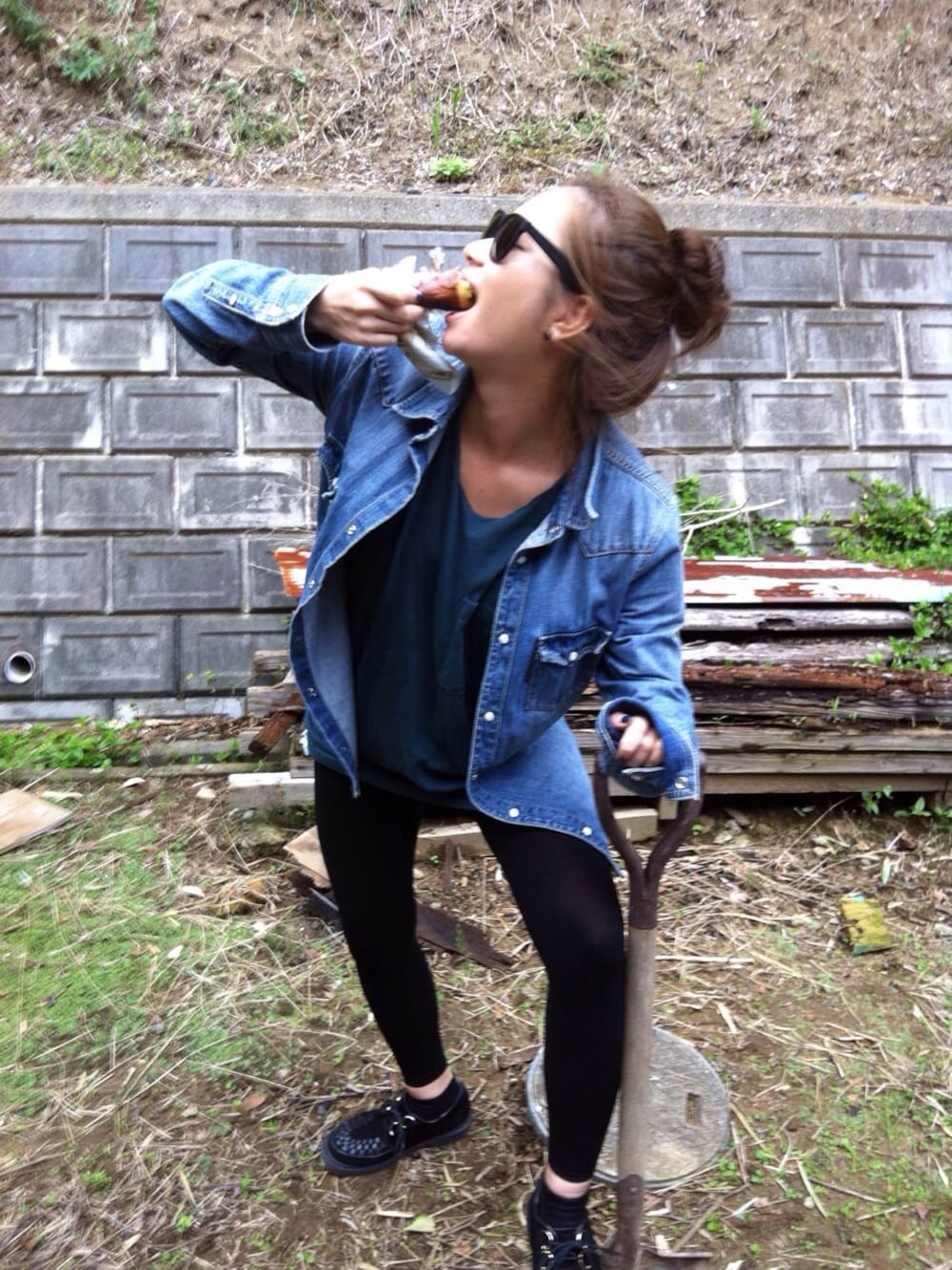 焼き芋&ランニングスタイル outer : RODEOサンプル tops : vintageメンズTリメイク shose : vintage