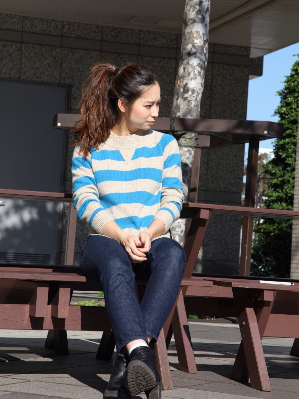 hikaruのニット/セーター「Bonjour Girl STRIPE KNIT」を使ったコーディネート