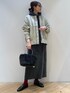 【基本プロフィール】 身長:162cm 年齢:30代前半 骨格タイプ:ストレート 普段着用サイズ: トップス・ボトム→Mサイズ シューズ→24cm 【ブルゾン】Fサイズ ▼サイズ感 見頃や腕周りゆったりしています。ヒップはすっぽり隠れて安心です。高品質な中綿入りで、軽くて温かいのが特徴です。 ▼着心地・生地感 生地がやや美光沢でカジュアル過ぎず上品に羽織れます。グリーンが強くない柔らかな色味のカーキです。秋だけではなく、春にも使えるカラーです。 【パーカー】Fサイズ ▼サイズ感 見頃や腕周りゆったりしているAラインシルエットです。着丈は前後差があり、ヒップが隠る長さです。フードのたちも良く、1枚でサマになるデザインです。 ▼着心地・生地感 裏毛の生地で暖かいです。スミクロっぽい色味で、さりげないロゴとのコントラストで大人カジュアルに着ていただけます。 【スカート】38サイズ ▼サイズ感 ウエストぐるりゴムでストレスなく、着丈は162センチでふくらはぎくらいです。スッキリ見えるのと、全体的に窮屈感が全くなく、履き心地抜群です! ▼着心地・生地感 タイトシルエットですがかなりストレッチが効いており、感動するくらい履きやすいです。さりげないラメがコーデのポイントになります。