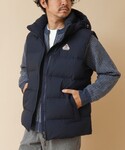 【ダウン】Mサイズ ▼サイズ感 メンズのMを着てみました。ゆったり過ぎずジャストなサイズ感で、着丈はヒップが隠れるくらいです。コンパクトに着る場合はSでも◎ 脇下も狭過ぎず、インナー合わせがしやすいです。 ▼着心地・生地感 上質なピレネックレスのダウンベスト。しっかり保温性があり軽い着心地です。落ち着いた印象のダークネイビーで、カジュアルスタイルもどこか上品な雰囲気で着て頂けます。 【パンツ】38サイズ ▼サイズ感 ウエストゴムで窮屈感なく、着丈はローシューズを履いた時にかかとが少し出るくらいです。シルエットが綺麗でスッキリ見えます。 ▼着心地・生地感 ウール混ですがチクチク感はあまりなく、履き心地抜群です。こっくりしたチョコレートのようなブラウンカラーです。