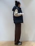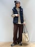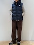 【ダウン】Mサイズ ▼サイズ感 メンズのMを着てみました。ゆったり過ぎずジャストなサイズ感で、着丈はヒップが隠れるくらいです。コンパクトに着る場合はSでも◎ 脇下も狭過ぎず、インナー合わせがしやすいです。 ▼着心地・生地感 上質なピレネックレスのダウンベスト。しっかり保温性があり軽い着心地です。落ち着いた印象のダークネイビーで、カジュアルスタイルもどこか上品な雰囲気で着て頂けます。 【パンツ】38サイズ ▼サイズ感 ウエストゴムで窮屈感なく、着丈はローシューズを履いた時にかかとが少し出るくらいです。シルエットが綺麗でスッキリ見えます。 ▼着心地・生地感 ウール混ですがチクチク感はあまりなく、履き心地抜群です。こっくりしたチョコレートのようなブラウンカラーです。