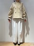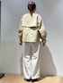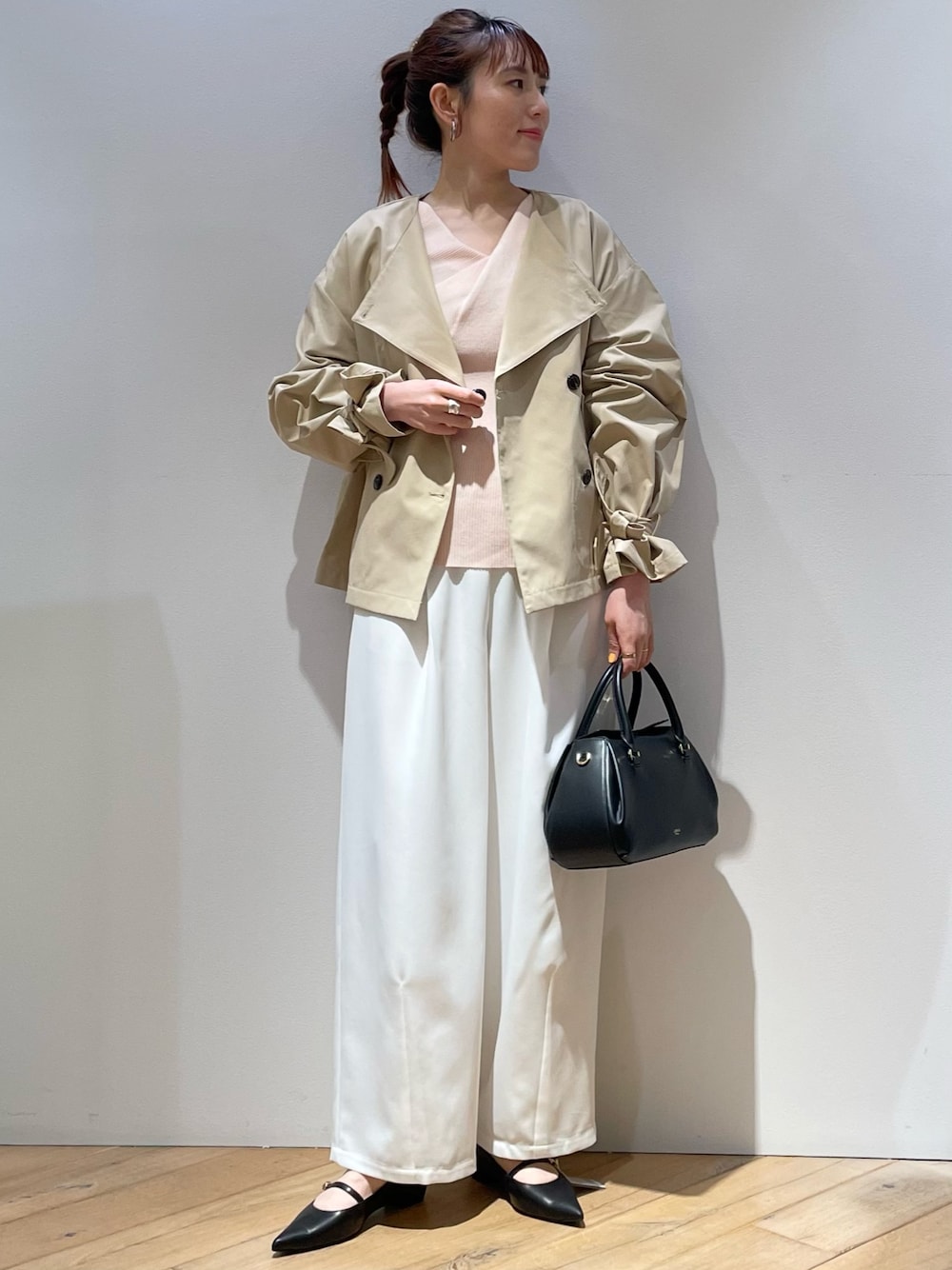 【基本プロフィール】 身長:162cm 年齢:30代前半 骨格タイプ:ストレート 普段着用サイズ: トップス・ボトム→Mサイズ シューズ→24cm 【トレンチ】Fサイズ ▼サイズ感 身幅や腕周りなどゆったりで中に沢山着込めます。着丈はショートで、ヒップの真ん中くらいの長さです。 ▼着心地・生地感 薄手で軽く、気軽に羽織れる1枚です。春にぴったりなライトベージュ。 【ニット】Fサイズ ▼サイズ感 程よくフィット感がありラインを綺麗に見せてくれます。二の腕周りはゆったりめです。着丈はヒップのトップにかかるくらいの長さです。 ▼着心地・生地感 柔らかく伸縮性があり、窮屈感はないです。優しいペールトーンの淡いピンクで、フェミニンな印象です。 【パンツ】38サイズ ▼サイズ感 ウエストゴムのタックパンツで、窮屈感なく履いていただけます。緩やかなコクーンシルエットで、ヒップラインも綺麗にカバーできますよ! ▼着心地・生地感 サラッとした薄手の生地で軽い履き心地です。白は裏地があるので透け感なく安心です。シワになりにくくイージーケアもできるので、オンオフ兼用で様々な場面で履いていただけます。
