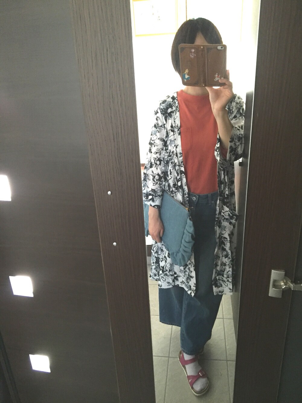 WEARのおしゃれな皆さんの影響を受けて、花柄ガウンを着てみた🌸テラコッタカラーの差し色がポイント☆開け閉め具合、今回はどちらのパターンも好きかな〜🌷 余談:季節外れの風邪をひいてしまい、旦那さんが買ってきてくれたアイスの味もわからなくてショック😭大好きなアイスの甘さを早くわかるようになりたい…🍨ラクトアイスではなく、アイスクリームなのがポイント☆