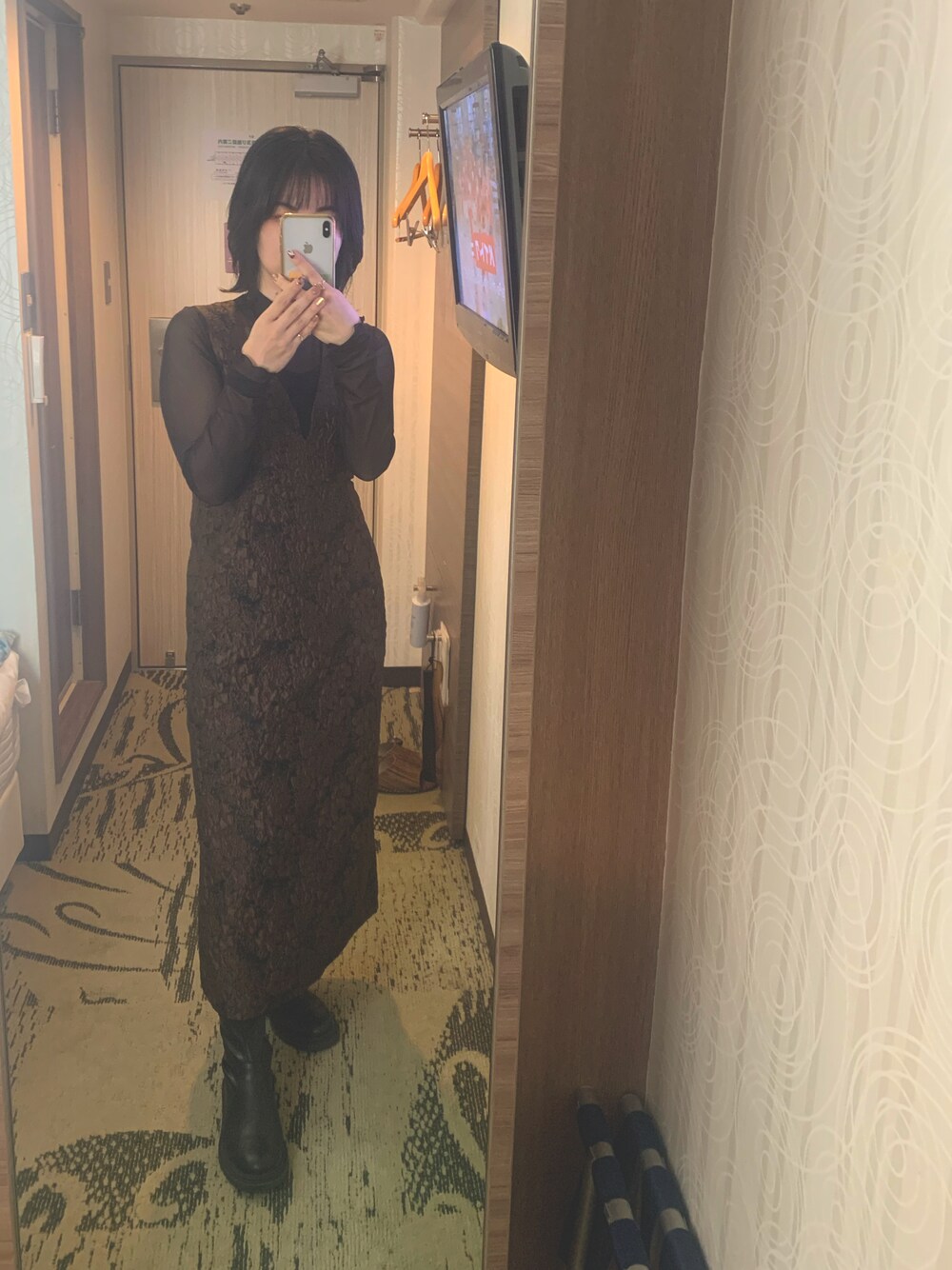 ひこじ。のワンピース「サイドオープンジャガードワンピース」を使ったコーディネート
