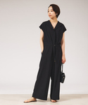 さらっとした素材のオールインワンは、オープンカラーなのですっきりみえるシルエットです!