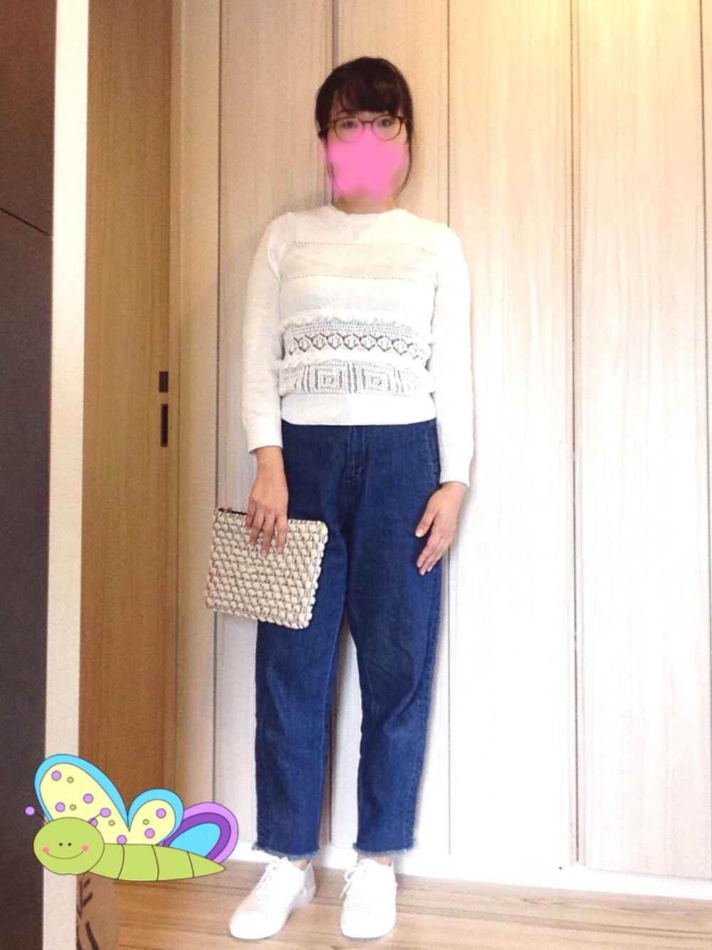 サマーニットを着るのが好きです😊 オゾックのジーンズはLサイズで少しダボっとしてますが、それはそれで気に入っています💕