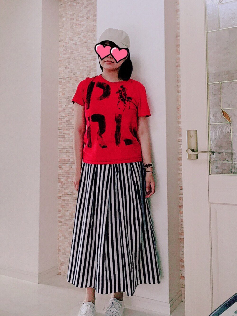 夏カラーコーデ。 Tシャツは子供と色違いで購入したもの。でも一緒に着たことは今まで一度も無い。(^_^;) 赤い服はこれしか持っていない、いつも地味なわたし。 色のつかいかたをもっと勉強しよう。