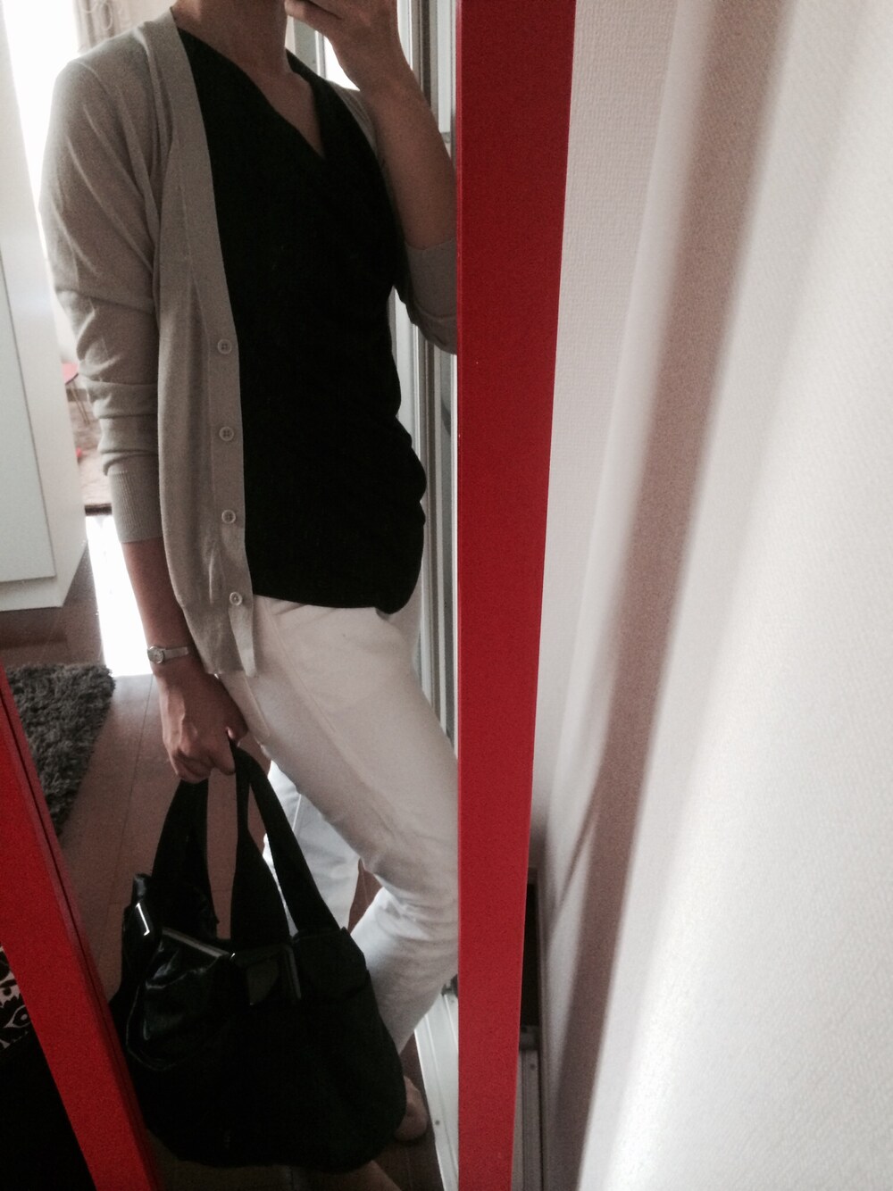 今日はモノトーンな日。 夏仕様のユニクロのカーデはさらっとして羽織りやすく優秀です。
