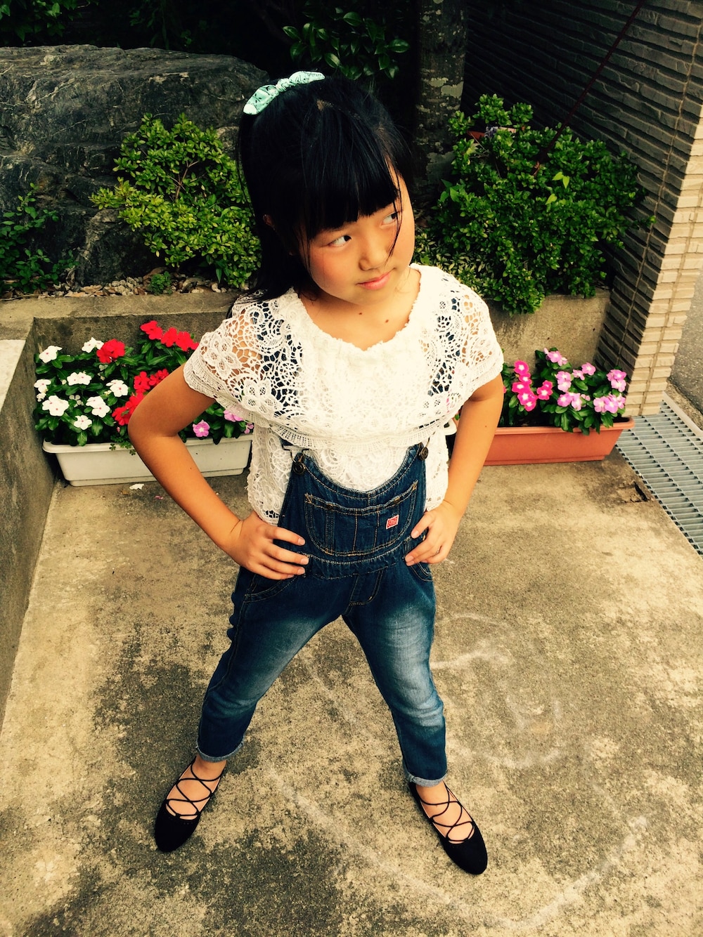 夏休み直前に撮ったコーデ✨ ゴミ拾いだったのでオーバーオール着せたらパツンパツンでお尻食い込んでた😂もうサイズアウトだー💦残念😑 お気に入りのはるるちゃんのヘアゴムでノリノリ〜♩次はパイナップル🍍 見て下さってありがとうございます💖