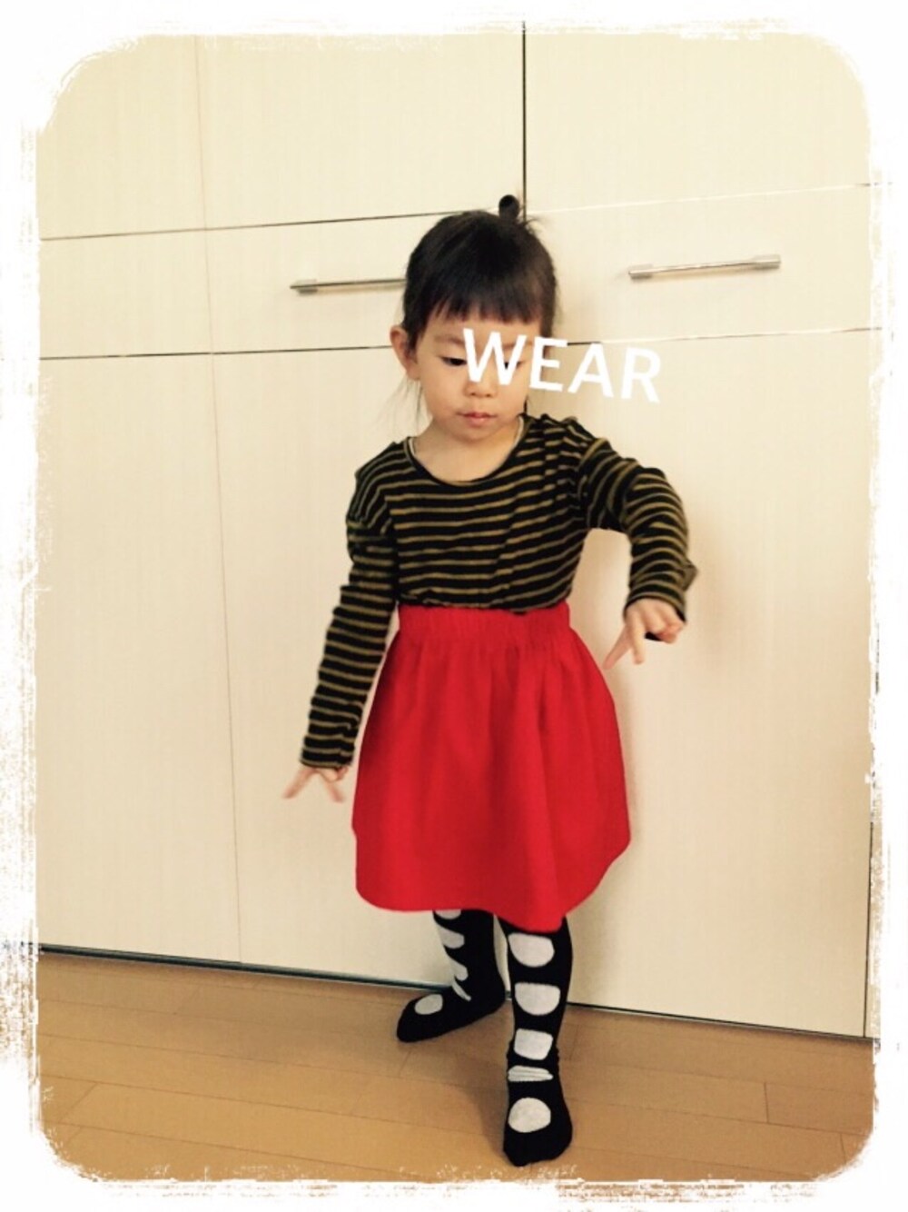 できたてホヤホヤのスカート♡ 適当に作ったから…丈が長すぎたかな?とか悩み中。短いのも可愛いけど、長めも今年っぽい?なーんて♡