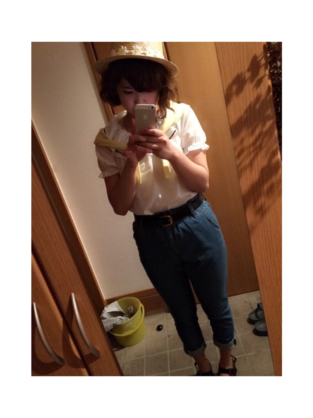 カンカン帽👒一目惚れ💓 帽子の中で1番のお気に入り。 黄色のカーデを巻いて 差し色にした🌟