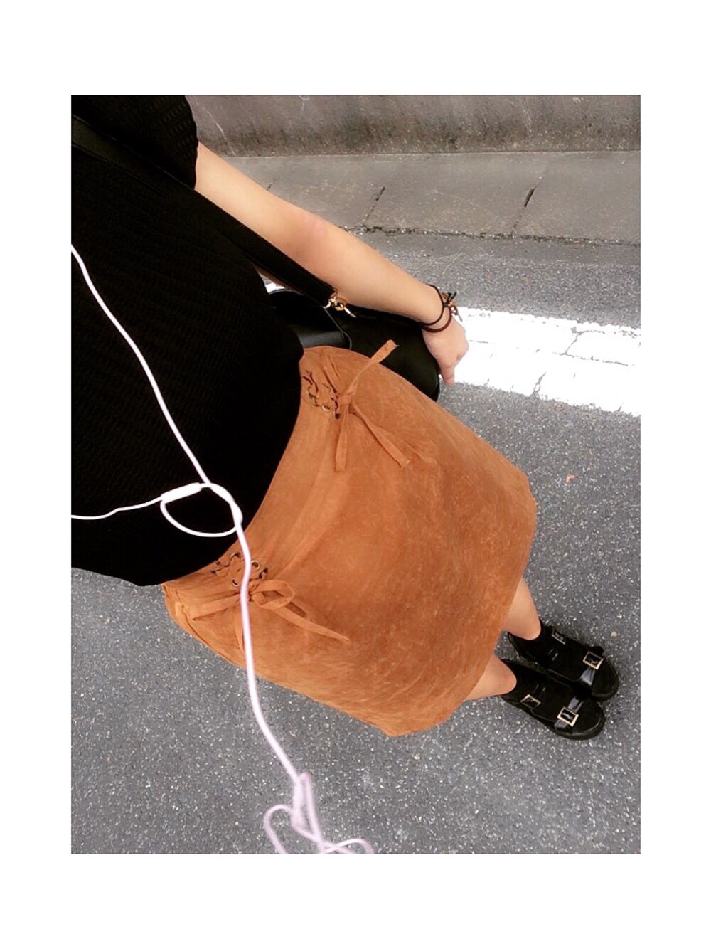 2015.08/28 CODE👗💞 最近買ったスカートがどうしても 着たくて着ちゃった💓 スウェード生地だから これからたくさん着るつもり😚💕 写ってないけどキャメルのハット も被ってた〜🌟🌟 秋服可愛すぎる😭🙏