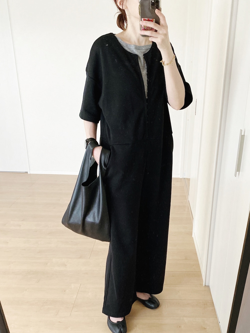 オールインワンの 大人コーデ。 首元が開きすぎないように インナーに着たタンクは 前後逆にして 着てみました☆ これからの時期は カーディガン羽織って まだまだ使えるオールインワン。
